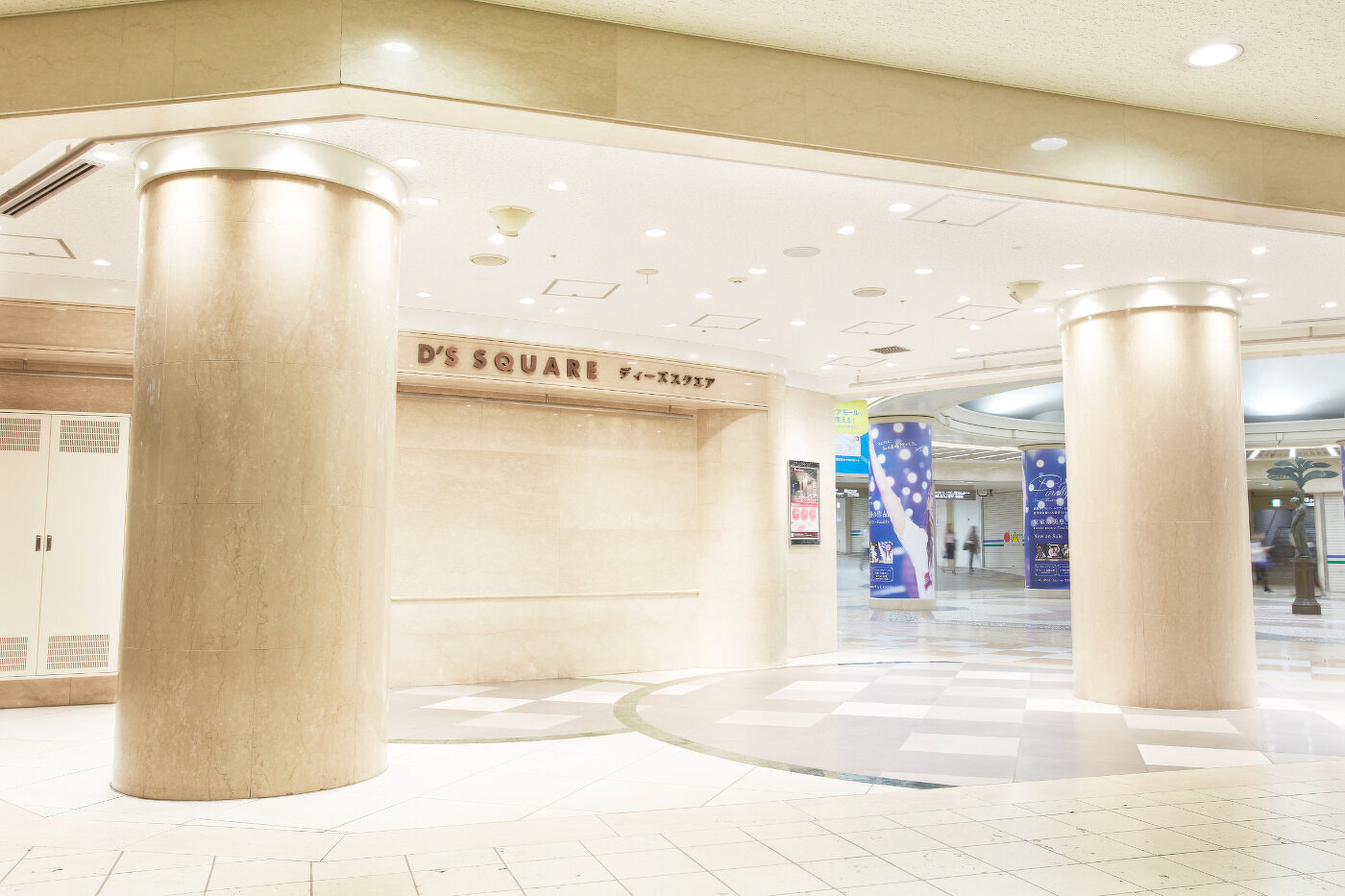 ディーズスクエアは、梅田1丁目に位置し、各線梅田駅を結ぶ公共地下歩道上の屋内イベントスペースです。