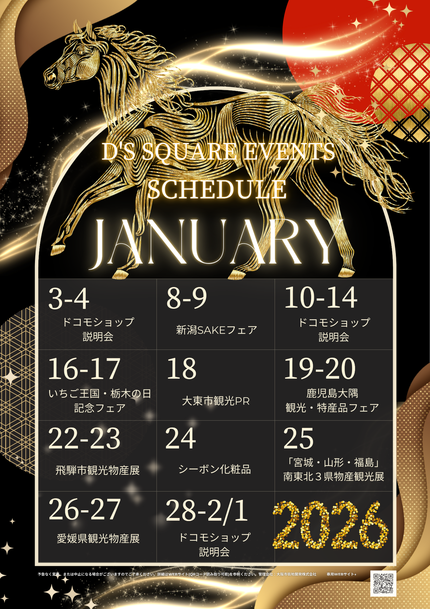 2026年1月ディーズスクエア月間スケジュール早見表