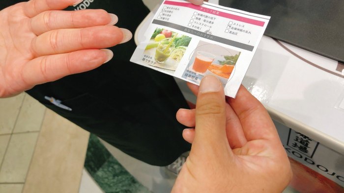 ②「血管チェック」の結果をもとに、その人にあった健康ジュースを提案。