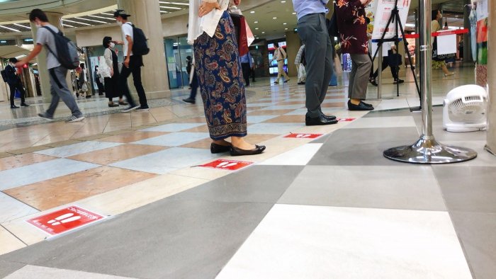 ※ソーシャルディスタンスの確保。(床面ステッカーにて密を回避。)