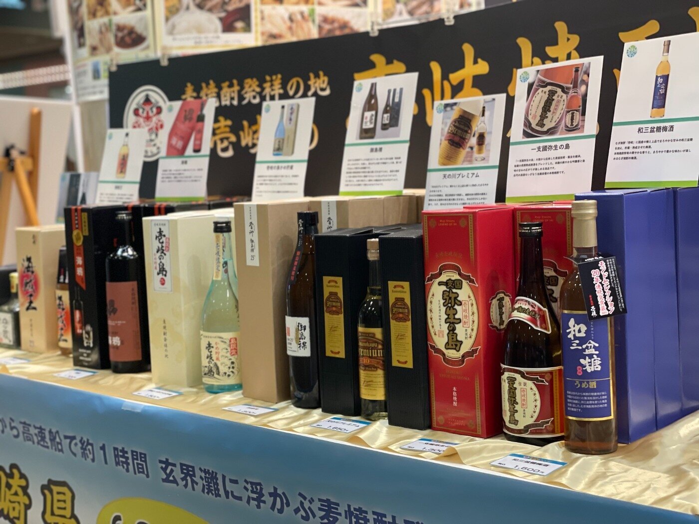 2日間限定開催であることや、麦焼酎発祥の島であることなどを、販促POPを用いて分かりやすくアピールしました。運営スタッフは、イベント看板を持ちながら、ひたすら呼び込みを行うことで、視線を会場に向ける努力を行いました。「呼び込み」⇒「会場の販促物(視認性)」⇒「会場の人の滞留」と、三段階でイベントの活気をアピールできたので良かったと思います。