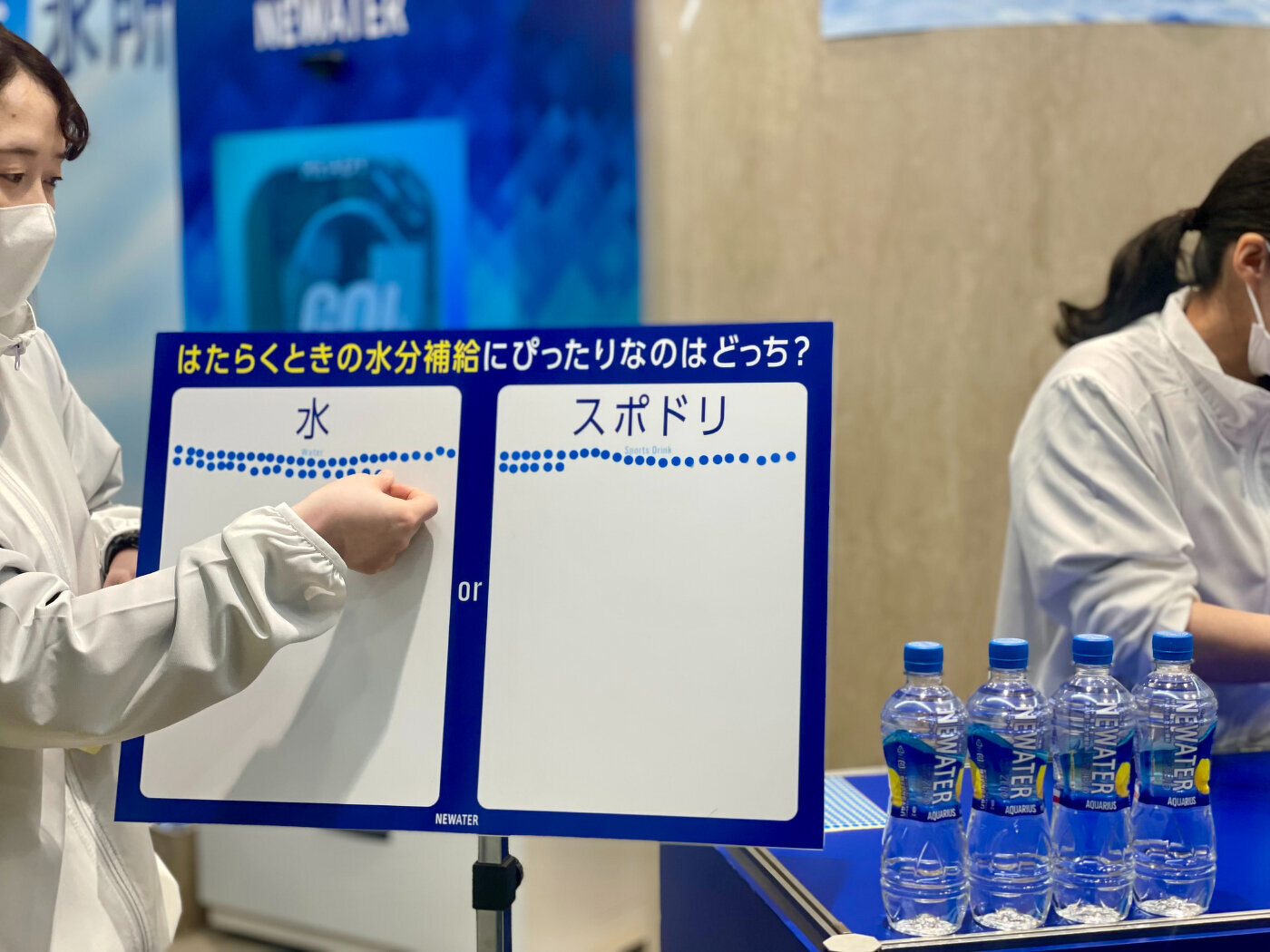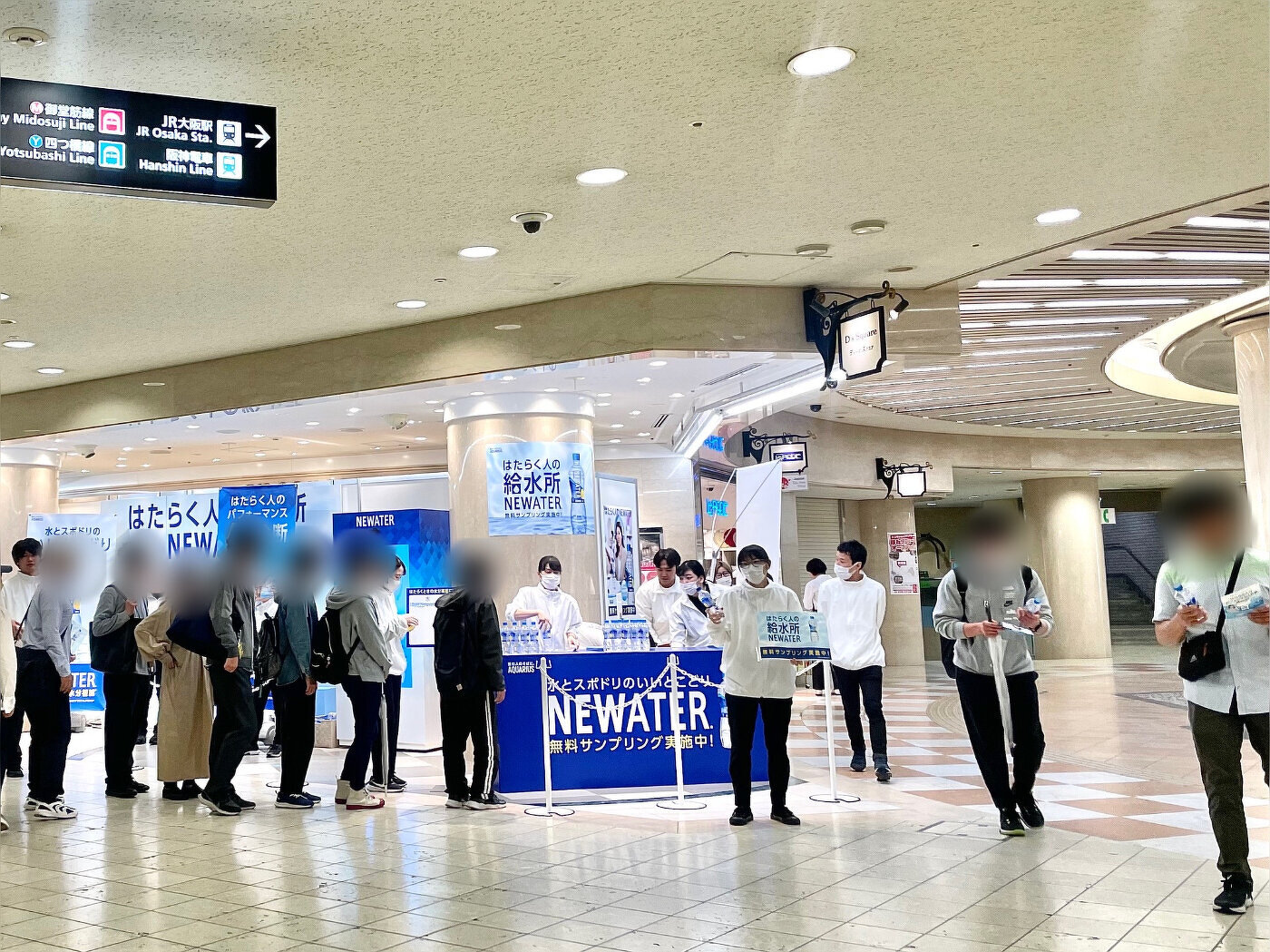 2024年5月13日(月)~15日(水)の3日間、梅田の地下街ディアモール大阪のディーズスクエアにて、「アクエリアス NEWATER」の無料サンプリングイベントを実施いたしました。