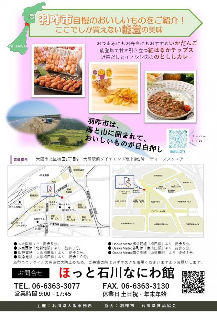 石川県の食品や農産物、お酒のPR販売と観光情報をお伝えするイベントです!