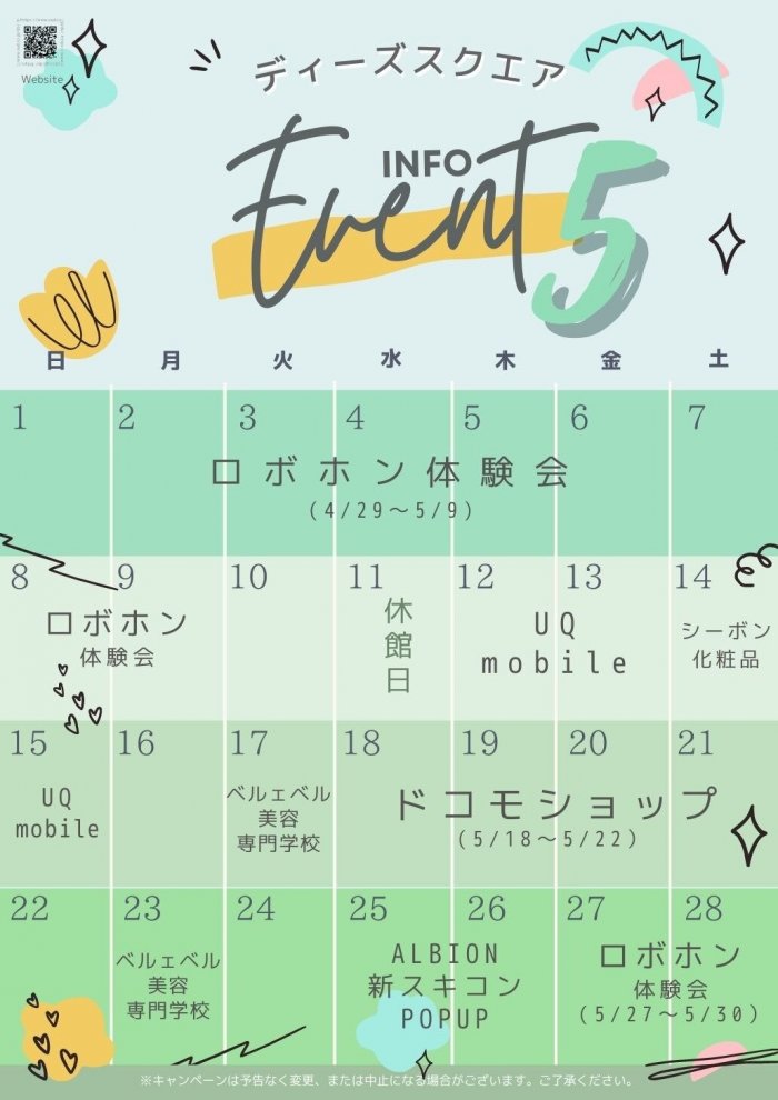 5月の予定表はコチラからダウンロードいただけます!