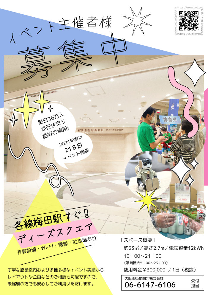 大阪・梅田駅を行き交う36万人の不特定多数へリーチ可能!屋内イベントスペース「ディーズスクエア」