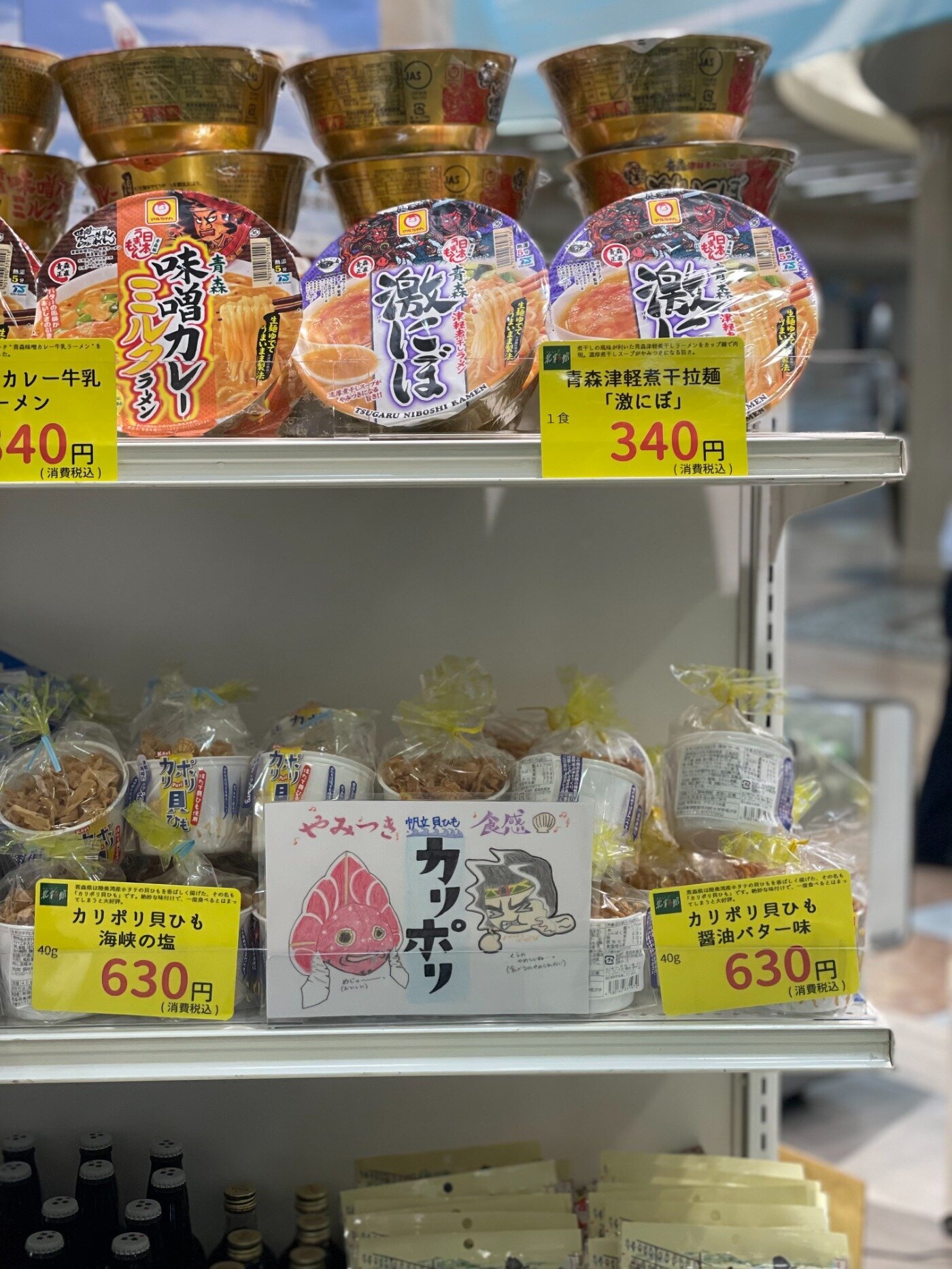 大和しじみ汁、ホタテみそ汁、カリポリ貝ひも(海峡の塩、醤油バター味)、なかよし、なかよし ブラックペッパー、青森味噌カレー牛乳ラーメン、トレー十和田バラ焼きうどん、青森しじみラーメン、青森津軽煮干拉麺激にぼ、にんにくせんべい、イギリストースト各種、青森県産生にんにく、スタミナ源タレ、ねぶた漬、ねぶた松前漬、ホタテ入りねぶた漬