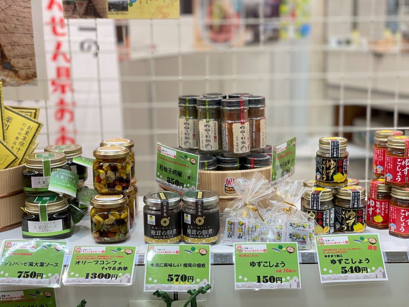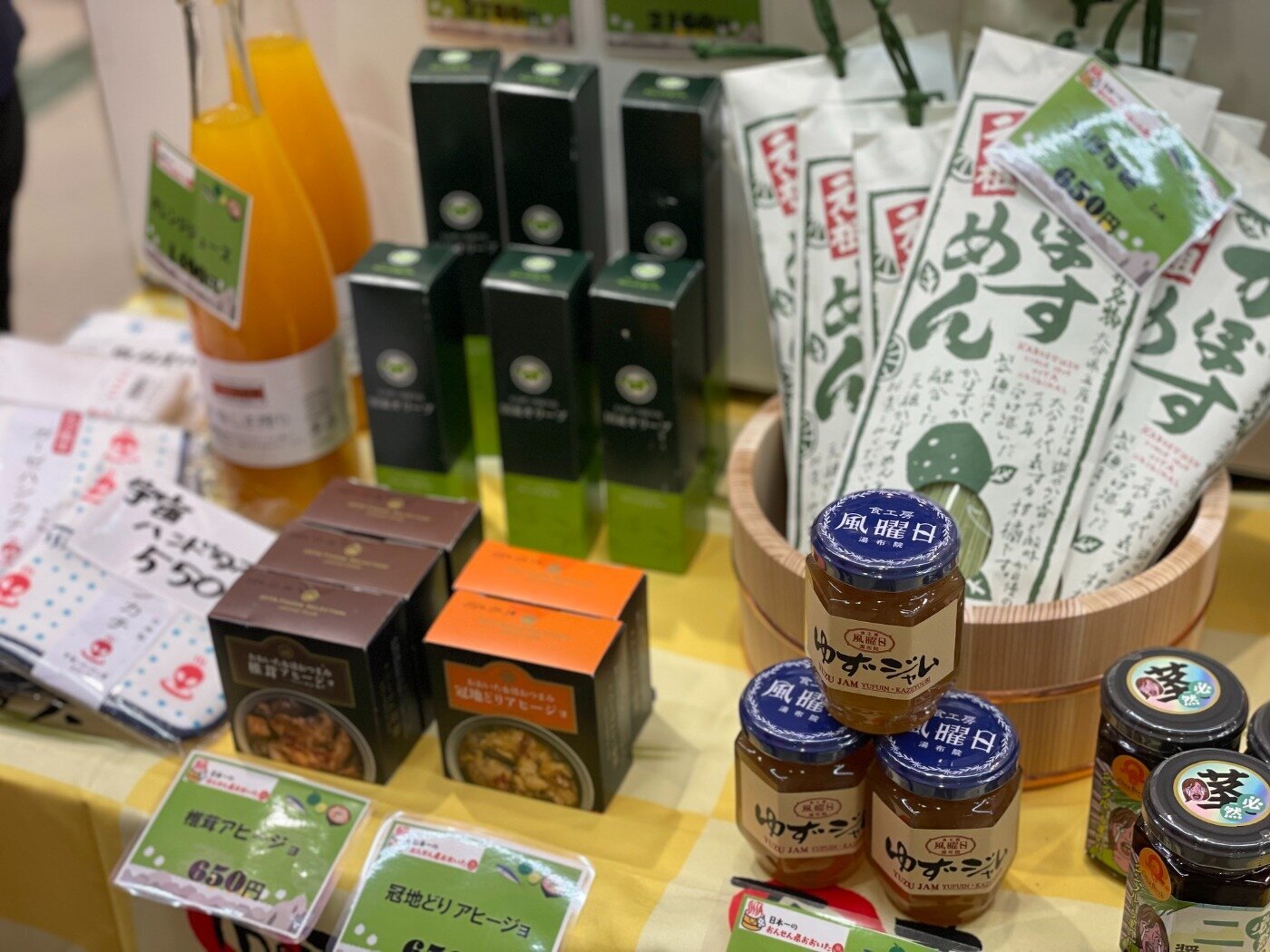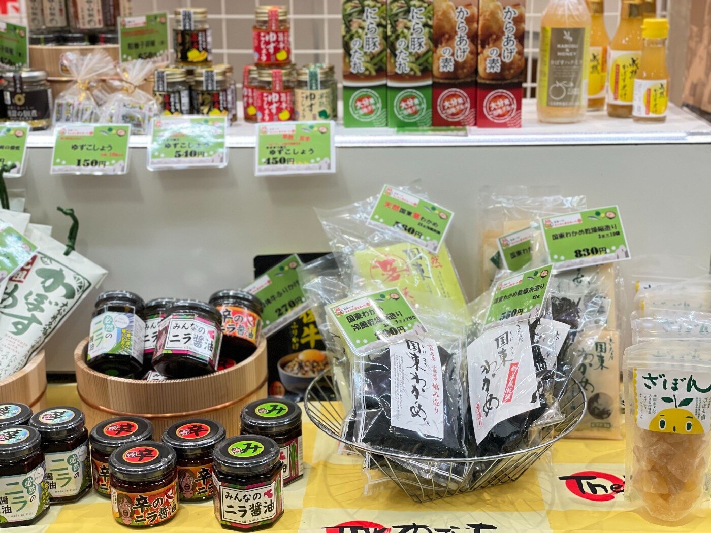 ゆず胡椒、かぼす胡椒、かぼす果汁、はちみつかぼす、にら醤油、アヒージョ缶詰め、大葉ソース、大葉こしょう、からあげのたれ、にら豚のたれ、りゅうきゅうたれ、オリーブオイル、オリーブ塩漬け、赤嶺酒造のリキュール(かぼす・生姜・梅・キウイ)、かぼすハイボール、缶チューハイ(かぼす・梨)、つぶらなかぼす、すりすりなし、湯の花、宇宙グッズ