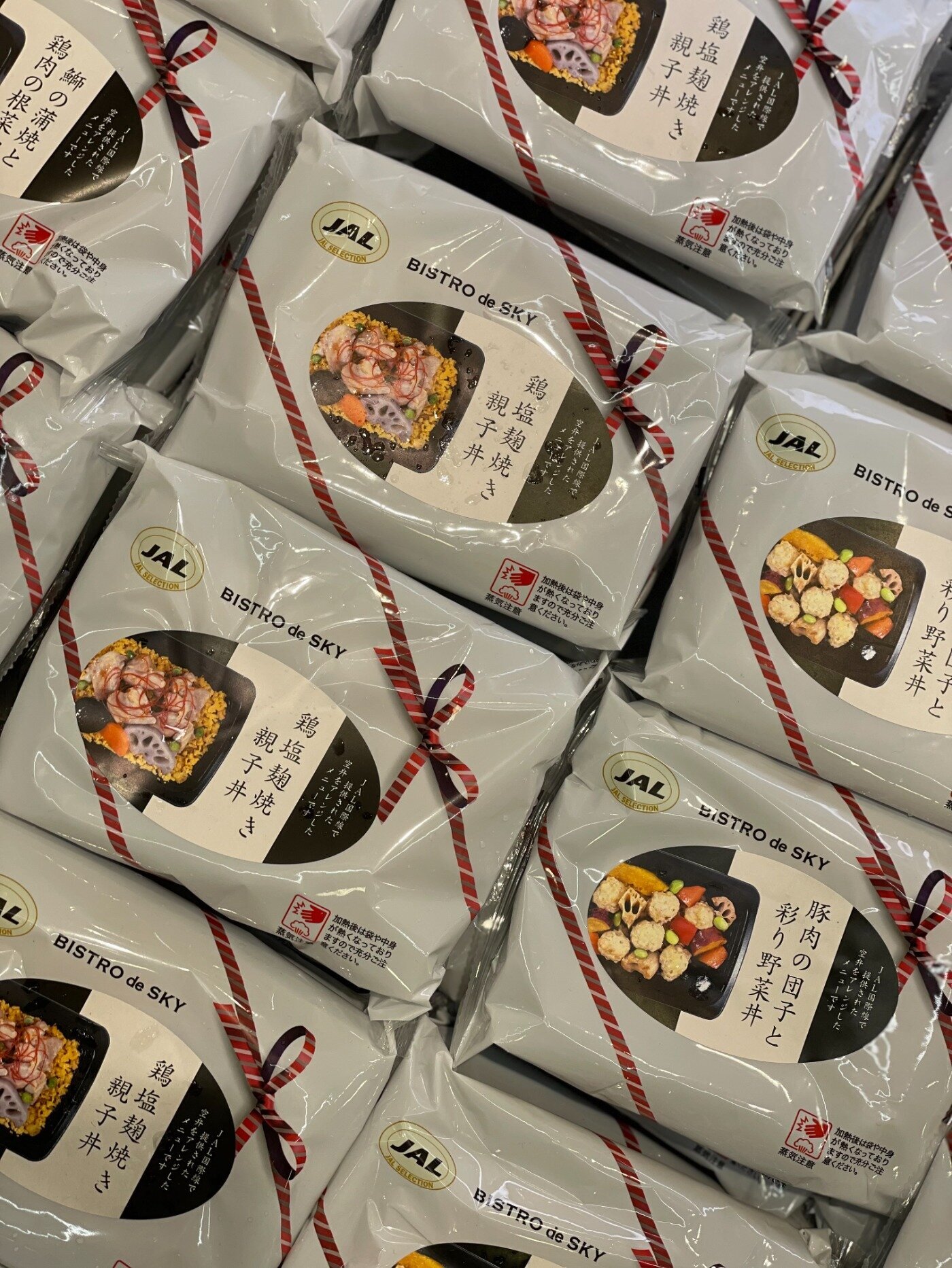 ⽜⾁どまん中シリーズ(みそ味・しお味・カレー味)、JAL特製機内⾷弁当各種(※冷凍販売、レンジでの温めが必要です。)