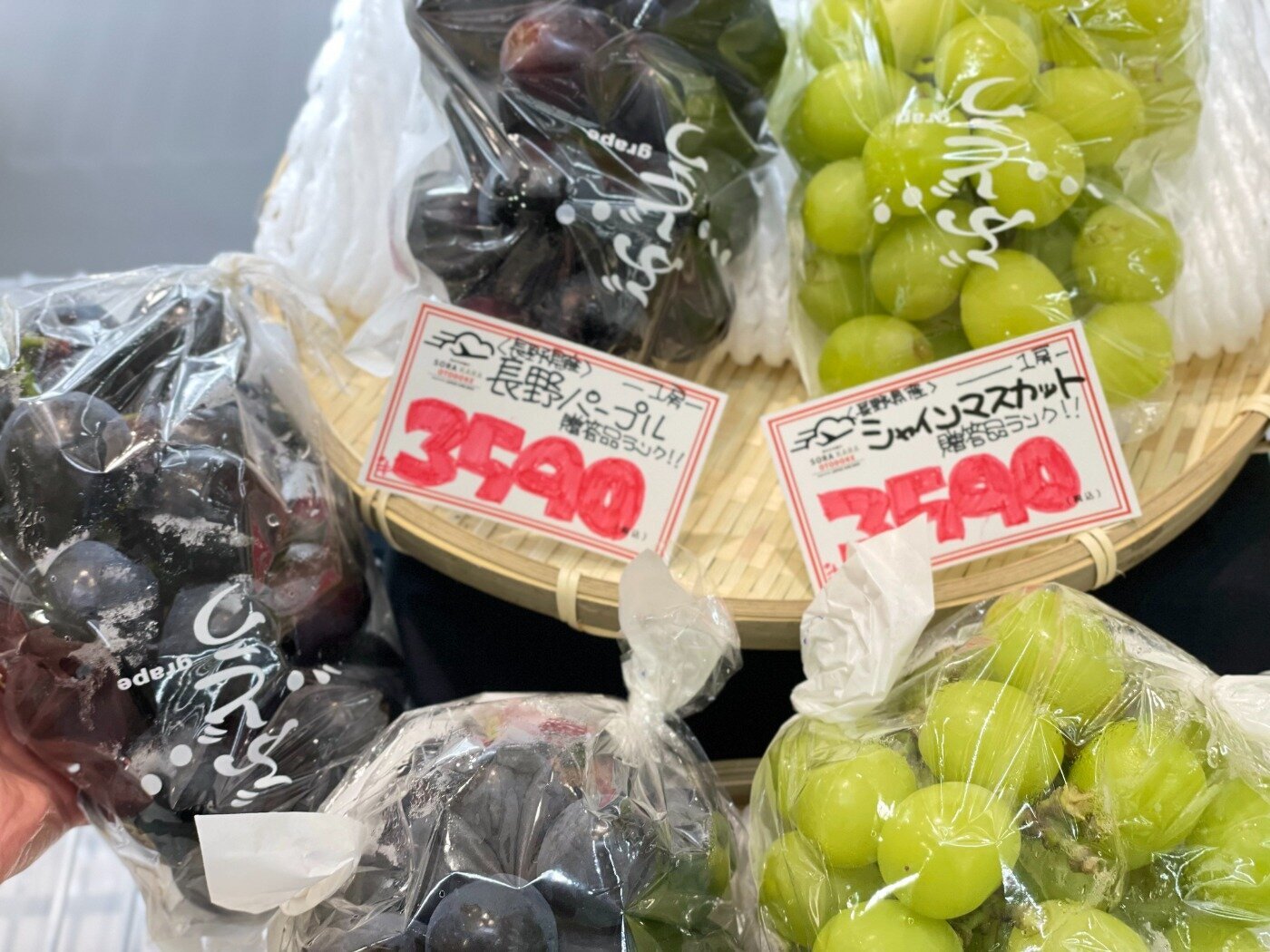 シャインマスカット、千歳本店⼿づくりどら焼き、⽟ドーナツミニ、バナナボートなど…