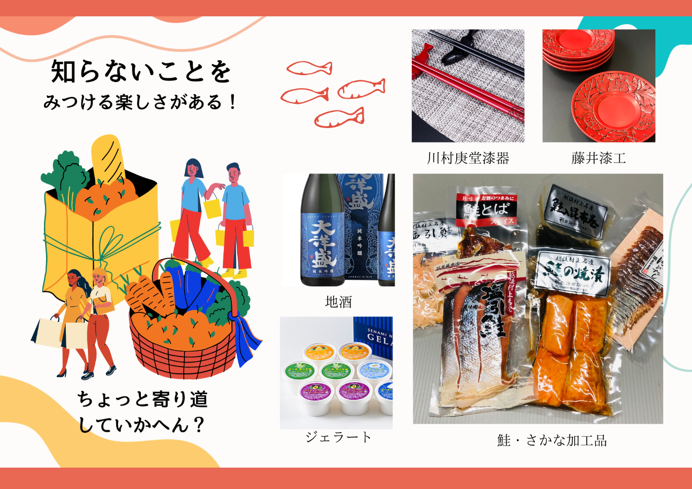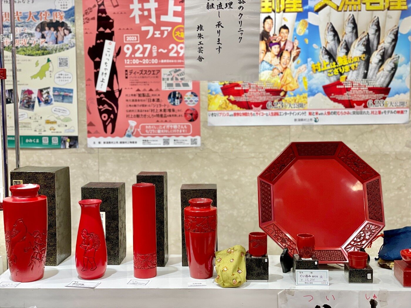 今回のイベントでは、村上特産の「鮭製品」をはじめ、地元酒造会社の「日本酒」、土地の魅力がつまった「ジェラート」、伝統工芸品である「村上木彫堆朱(ついしゅ)」など、村上の魅力ぎっしりの特産品を販売します!