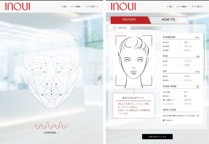 「顔の骨格やパーツの3D解析」×「資生堂独自の顔立ち分析」×「パーソナルカラー分析」を融合したインウイのオリジナルコンテンツをもとに、お客さまの魅力のポイントやニーズを捉えつつ”似合わせメイク”を提案します!