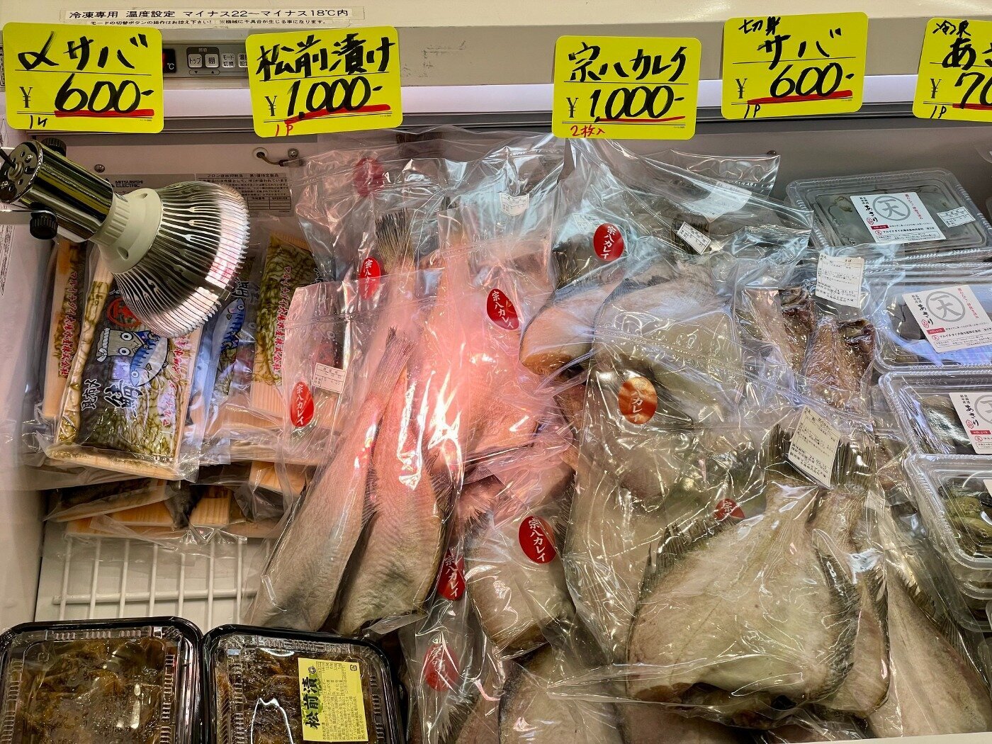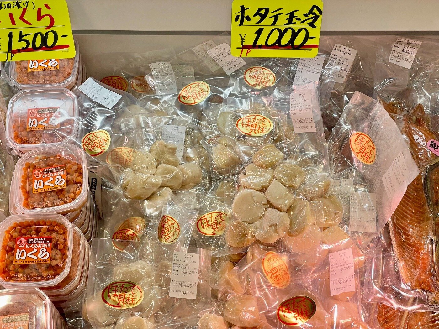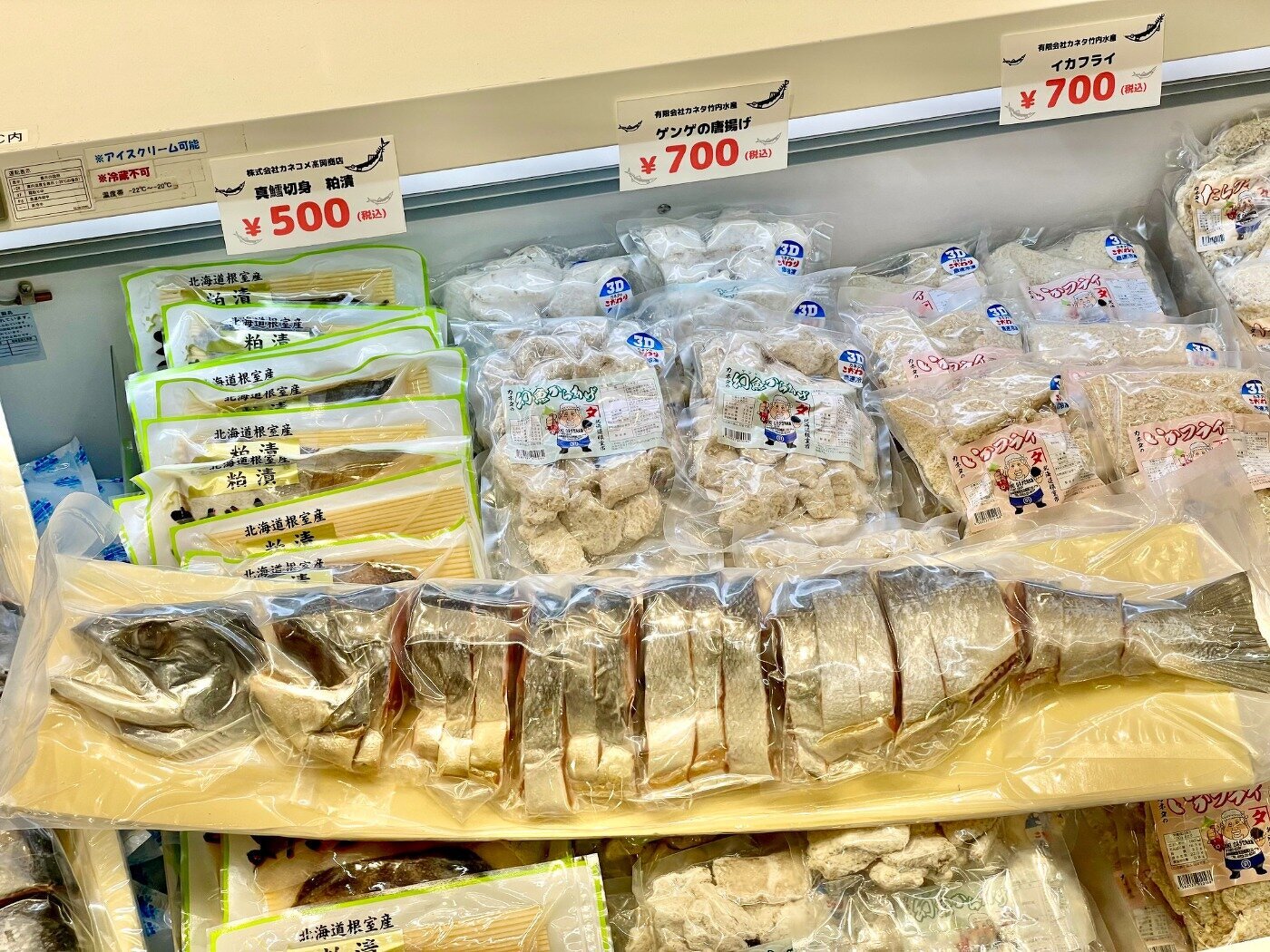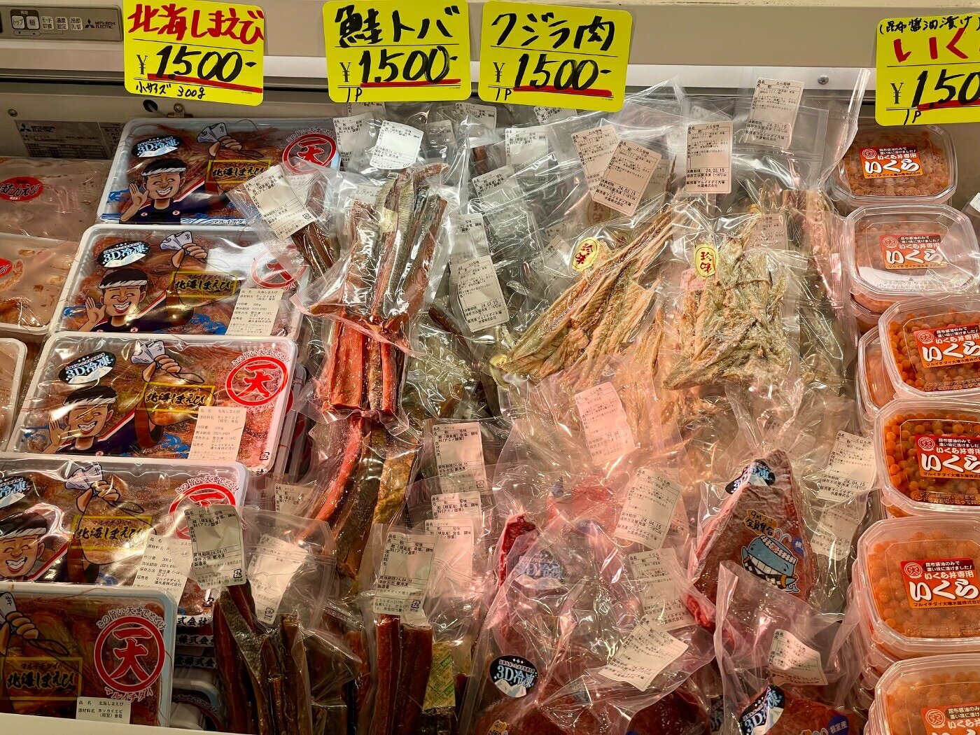 訳アリほっけ(キズ)、ホッカイエビ、花咲がに、〆サバ、いくら、生干しこまい、あさり、玉冷ほたて、汐サンマ、糠サンマ、ほや酢、タコ酢、煮つぶ、ふのり、イカの塩辛とジャンカラ、くじらユッケ、鮭フレーク、ほっきご飯、鮭切身、鮭半身、たらこ、冷凍ほっき、毛ガニ、大の貝、レトルトサンマ、犬のおやつこまい、レトルトカレー、トバカップ、そのままコマイ、カンカイ、切出し昆布、棹前早煮昆布、あつば根昆布、こんぶだし瓶、パリパリ昆布、八角 旨み干し、ソイ 旨み干し、つぶレトルト、タラフライ、イカフライ、ゲンゲ唐揚げ、サメカレイ 西京漬け、はぼまい昆布しょうゆ贅沢仕上げ、歯舞とろろ昆布、真鱈切身 粕漬、さんまの旨煮、いわしの旨煮、ほたての旨煮、ほたてのバター醤油、ほたてのバジル