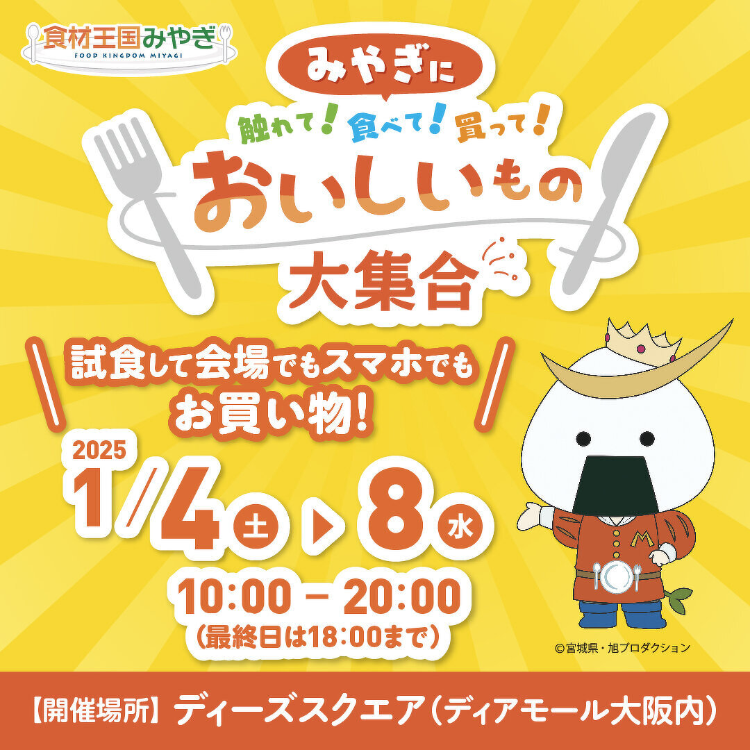 食材王国みやぎの魅力がたっぷり詰まった、とっておきの5日間!2025年1月4日(土)~8日(水)、大阪・ディーズスクエアに、宮城の美味しいものが大集合します!