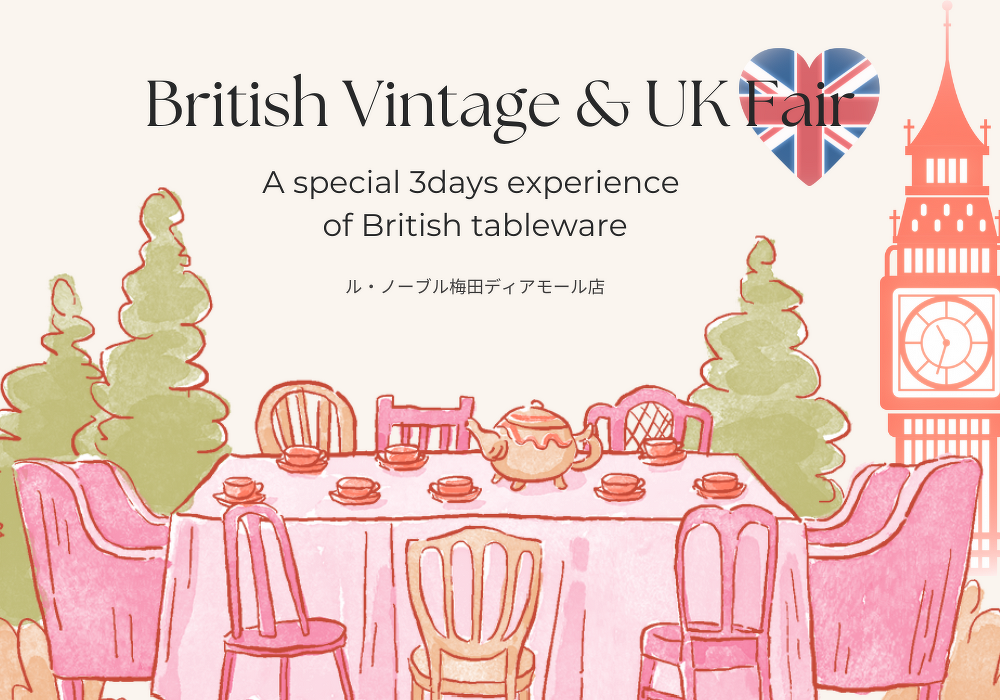 この秋、ル・ノーブル ディアモール大阪店が贈るスペシャルイベント「英国ヴィンテージ・英国フェア」を、梅田の地下街 ディアモール大阪 円形広場横 ディーズスクエアにて開催します!この機会に、英国の情緒あふれる食器を手に取ってご覧ください。さらに、今回は初の試みとなるコーヒーの試飲会も同時開催します(10/15のみ)。