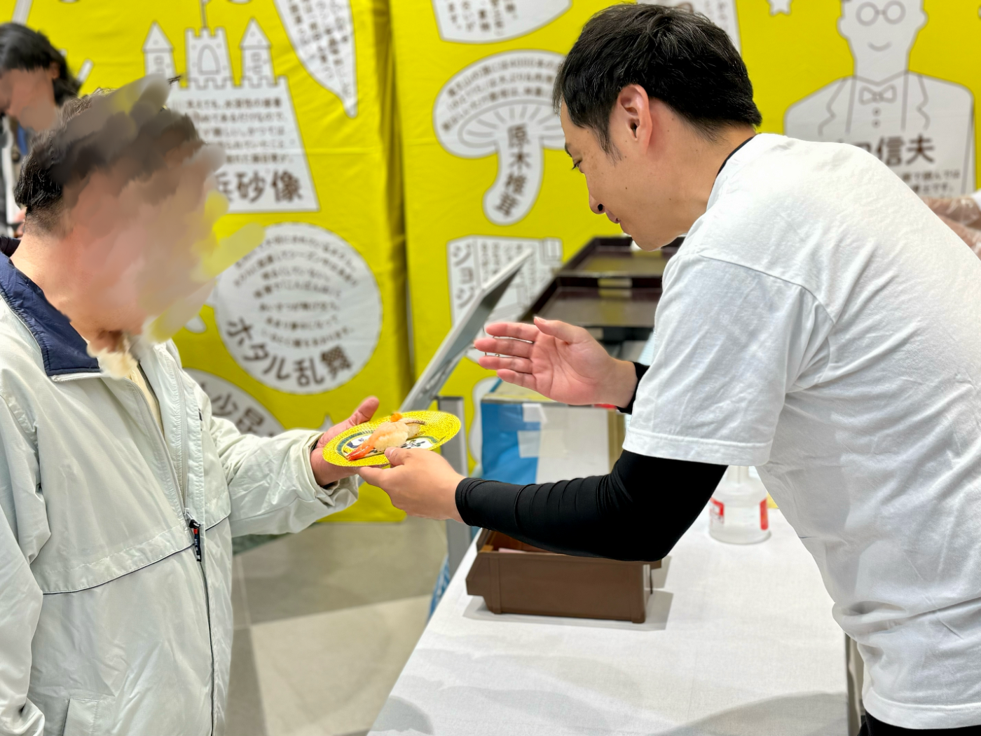 金沢まいもん寿司と羽咋市の奇跡のコラボ! あの金沢まいもん寿司が、羽咋市の自然栽培米を使って特別に握ったお寿司を、なんと無料で提供します!ネタは、新鮮な甘エビと、高級魚能登フグの握り。まさに能登の恵みが詰まった逸品です!